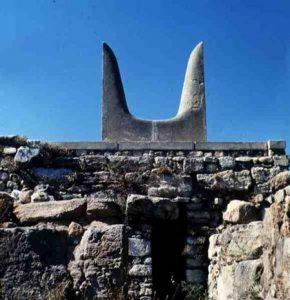 - The outer walls were decorated with images of big bull horns.